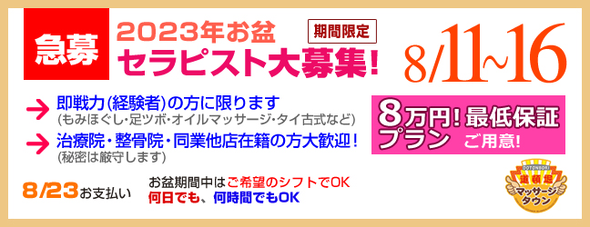 2023~2024! 年末年始の短期!期間限定マッサージ・セラピスト大募集!